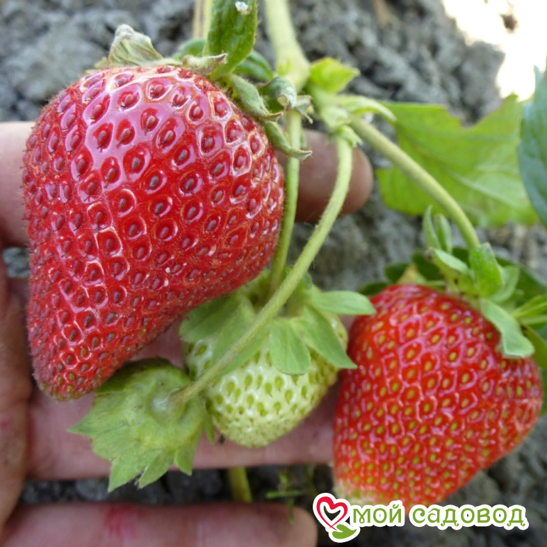 Плоды насыщенного, ярко-красного цвета. Форма конусовидная, вытянутая. Мякоть яркая, красная. Ягоды упругие, сочные. Вкус выраженный и яркий. Вес плодов достигает 35 грамм. Осенью размер плодов уменьшается. Ягоды имеют довольно плотную мякоть, хорошо переносят продолжительную транспортировку.